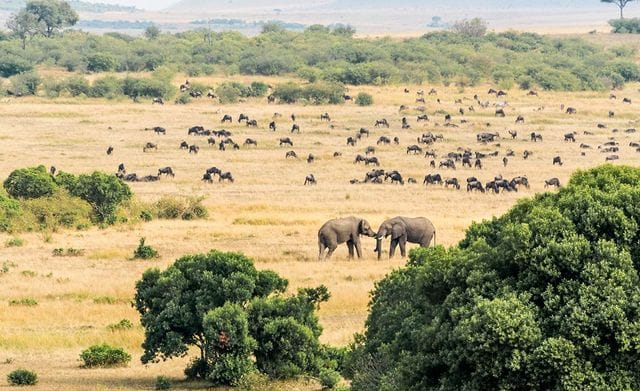 Maasai Mara is home to a diverse range of wildlife, including lions, elephants, buffalos, leopards, rhinos, giraffes, zebras, wildebeests, cheetahs, hyenas, and numerous bird species.