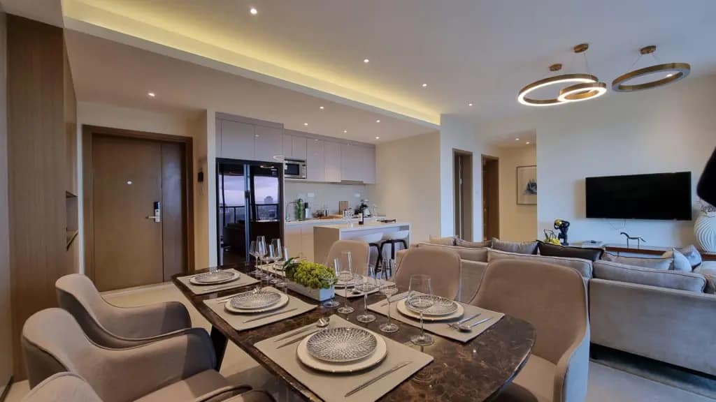 The residential towers within the Global Trade Centre offer a range of options, from cozy apartments to expansive penthouses. These homes are designed for modern living, boasting spacious layouts, contemporary kitchens, and panoramic windows that bring in abundant natural light.