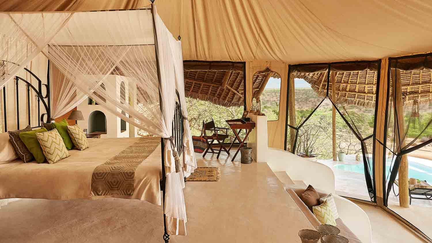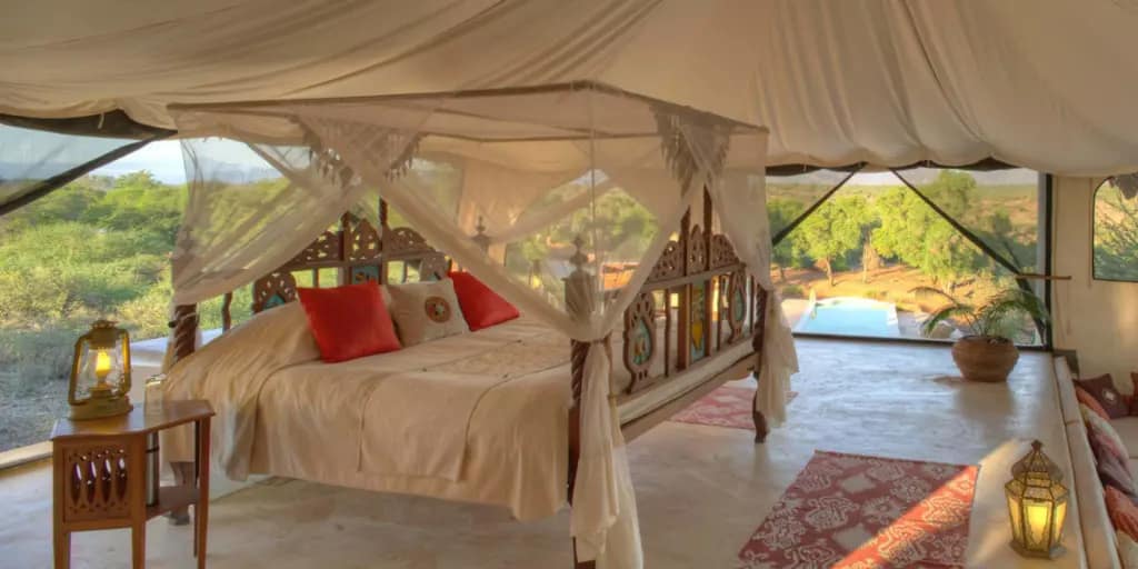 The luxury tents redefine the camping experience, featuring opulent furnishings, private verandas, and panoramic views. Each tent is a sanctuary, seamlessly blending modern comfort with the raw beauty of the Samburu landscape.